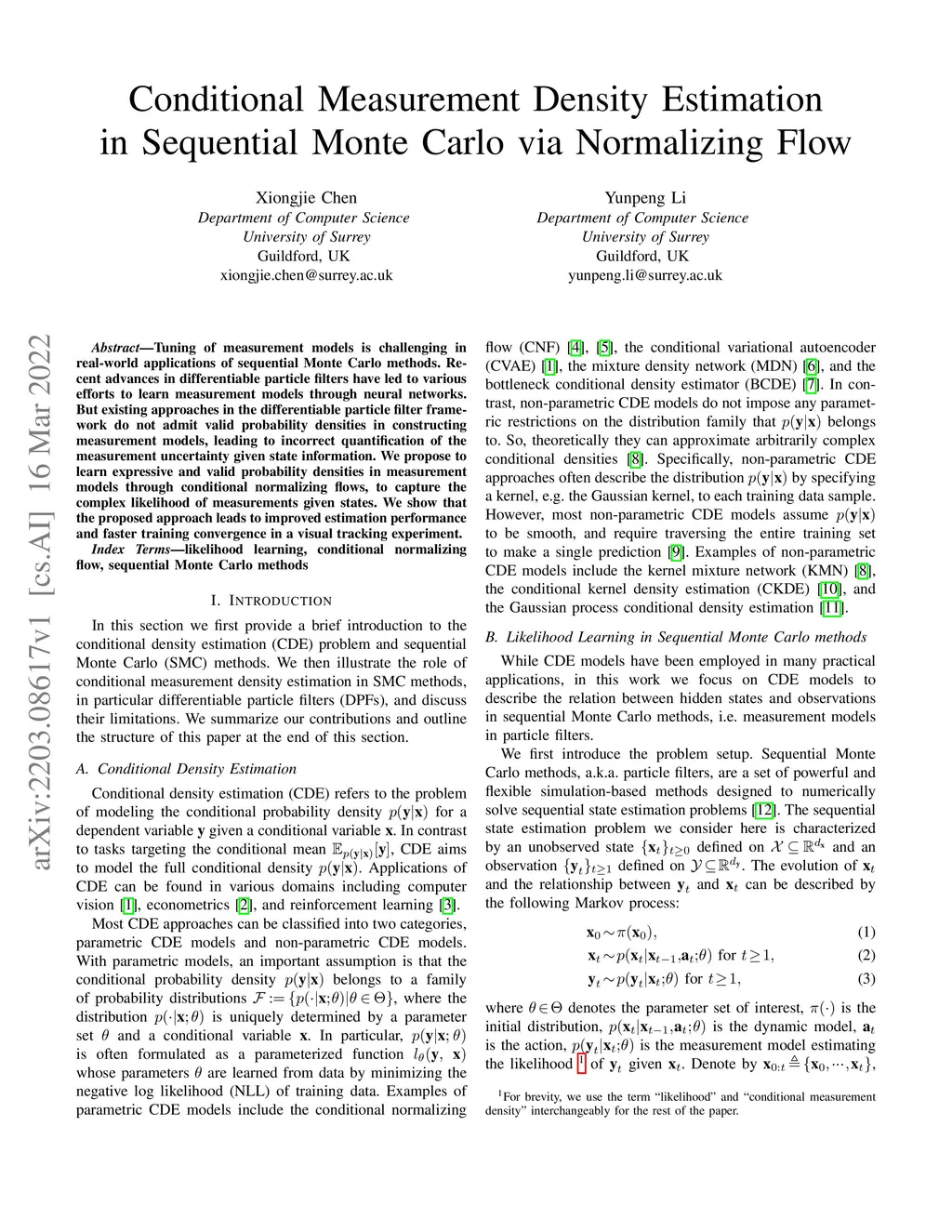 Conditional Measurement Density Estimation in Sequential Monte Carlo via