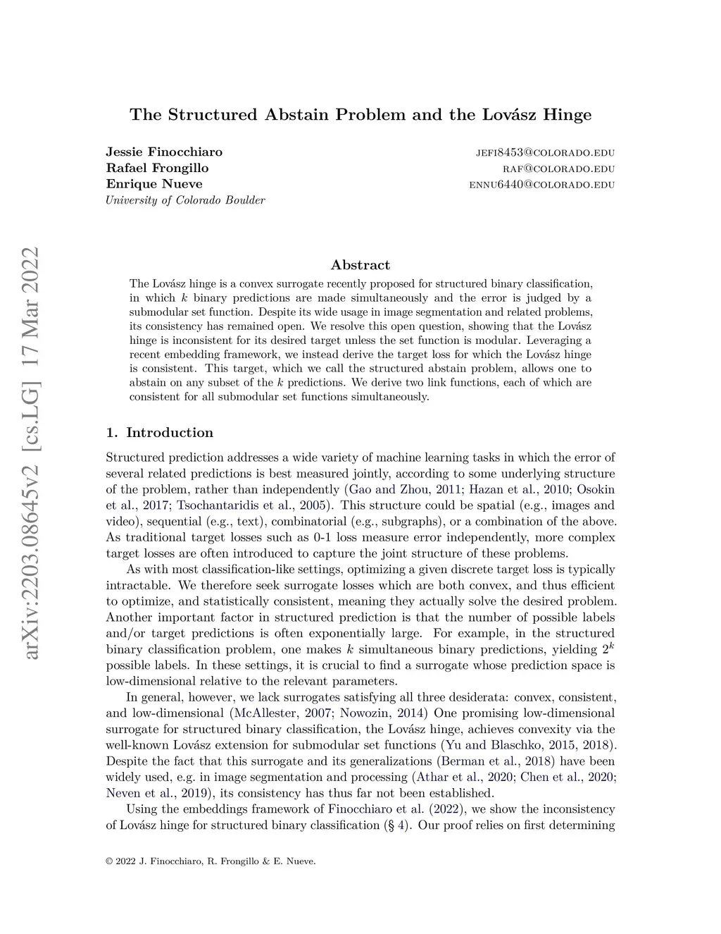 The Lov\ász hinge is a convex surrogate recently proposed for structured binary classification, in which binary predictions are made simultaneously and the error is judged by a submodular set function. Despite its wide usage in image segmentation and related problems, its consistency has remained open. We resolve this open question, showing that the Lov\ász hinge is inconsistent for its desired target unless the set function is modular. Leveraging a recent embedding framework, we instead derive the target loss for which the Lov\ász hinge is consistent. This target, which we call the structured abstain problem, allows one to abstain on any subset of the predictions. We derive two link functions, each of which are consistent for all submodular set functions simultaneously.