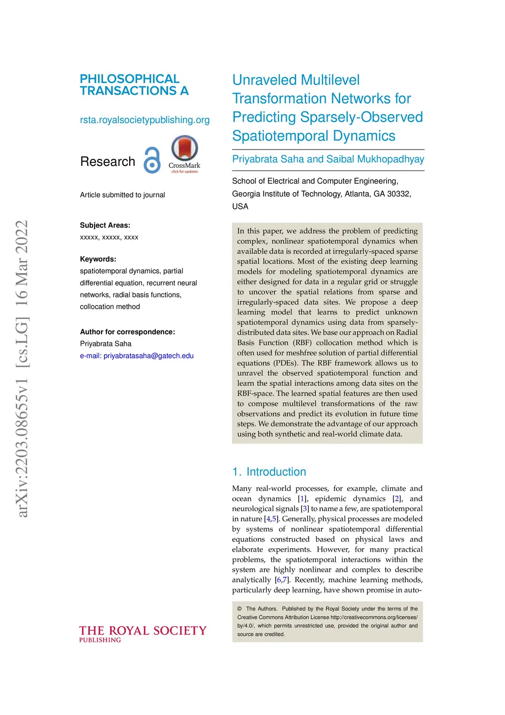 In this paper, we address the problem of predicting complex, nonlinear spatiotemporal dynamics when available data is recorded at irregularly-spaced sparse spatial locations. Most of the existing deep learning models for modeling spatiotemporal dynamics are either designed for data in a regular grid or struggle to uncover the spatial relations from sparse and irregularly-spaced data sites. We propose a deep learning model that learns to predict unknown spatiotemporal dynamics using data from sparsely-distributed data sites. We base our approach on Radial Basis Function (RBF) collocation method which is often used for meshfree solution of partial differential equations (PDEs). The RBF framework allows us to unravel the observed spatiotemporal function and learn the spatial interactions among data sites on the RBF-space. The learned spatial features are then used to compose multilevel transformations of the raw observations and predict its evolution in future time steps. We demonstrate the advantage of our approach using both synthetic and real-world climate data.