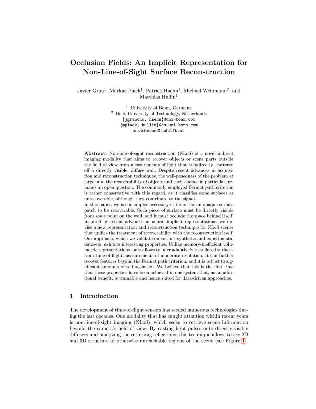 Non-line-of-sight reconstruction (NLoS) is a novel indirect imaging modality that aims to recover objects or scene parts outside the field of view from measurements of light that is indirectly scattered off a directly visible, diffuse wall. Despite recent advances in acquisition and reconstruction techniques, the well-posedness of the problem at large, and the recoverability of objects and their shapes in particular, remains an open question. The commonly employed Fermat path criterion is rather conservative with this regard, as it classifies some surfaces as unrecoverable, although they contribute to the signal. In this paper, we use a simpler necessary criterion for an opaque surface patch to be recoverable. Such piece of surface must be directly visible from some point on the wall, and it must occlude the space behind itself. Inspired by recent advances in neural implicit representations, we devise a new representation and reconstruction technique for NLoS scenes that unifies the treatment of recoverability with the reconstruction itself. Our approach, which we validate on various synthetic and experimental datasets, exhibits interesting properties. Unlike memory-inefficient volumetric representations, ours allows to infer adaptively tessellated surfaces from time-of-flight measurements of moderate resolution. It can further recover features beyond the Fermat path criterion, and it is robust to significant amounts of self-occlusion. We believe that this is the first time that these properties have been achieved in one system that, as an additional benefit, is trainable and hence suited for data-driven approaches.