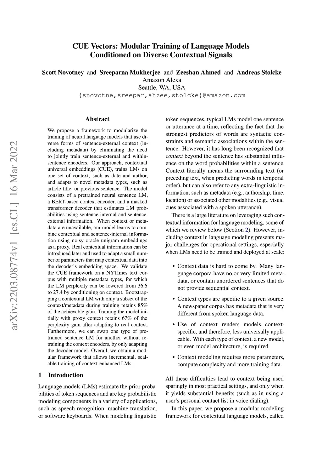 CUE Vectors: Modular Training of Language Models Conditioned on Diverse