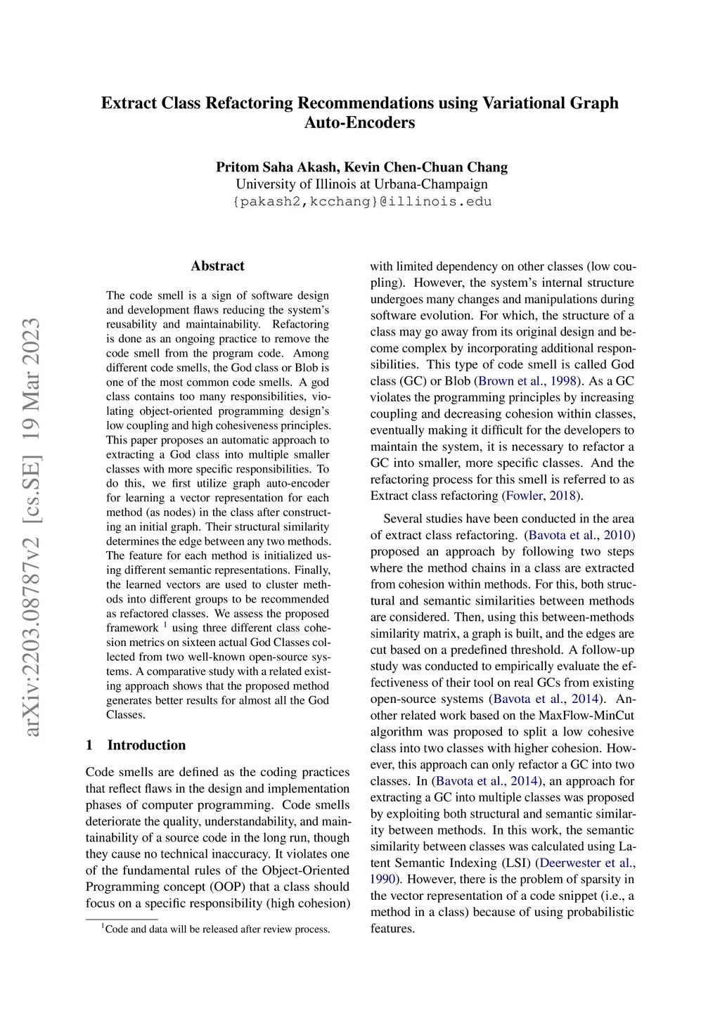 Exploring Variational Graph Auto-Encoders for Extract Class Refactoring