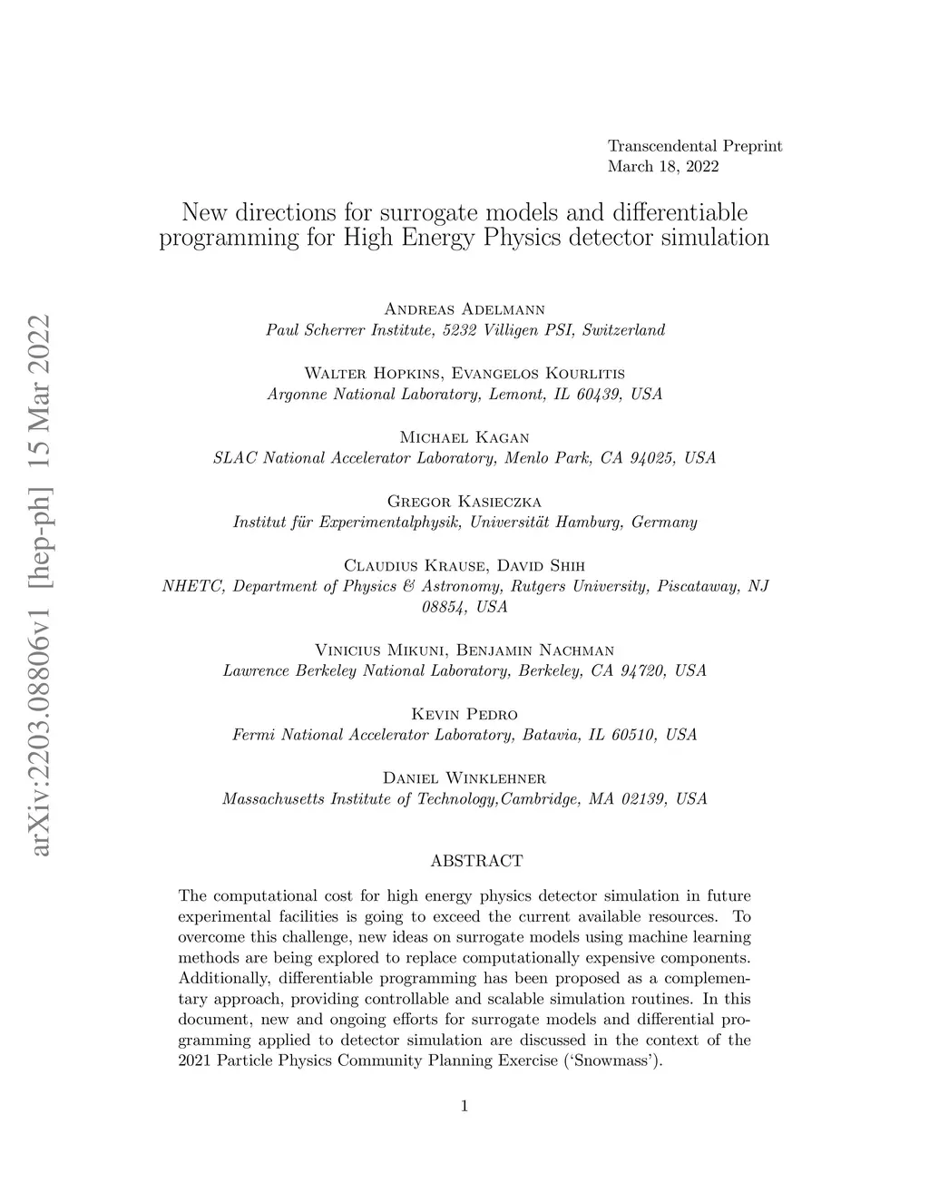 The computational cost for high energy physics detector simulation in future experimental facilities is going to exceed the current available resources. To overcome this challenge, new ideas on surrogate models using machine learning methods are being explored to replace computationally expensive components. Additionally, differentiable programming has been proposed as a complementary approach, providing controllable and scalable simulation routines. In this document, new and ongoing efforts for surrogate models and differential programming applied to detector simulation are discussed in the context of the 2021 Particle Physics Community Planning Exercise (`Snowmass').