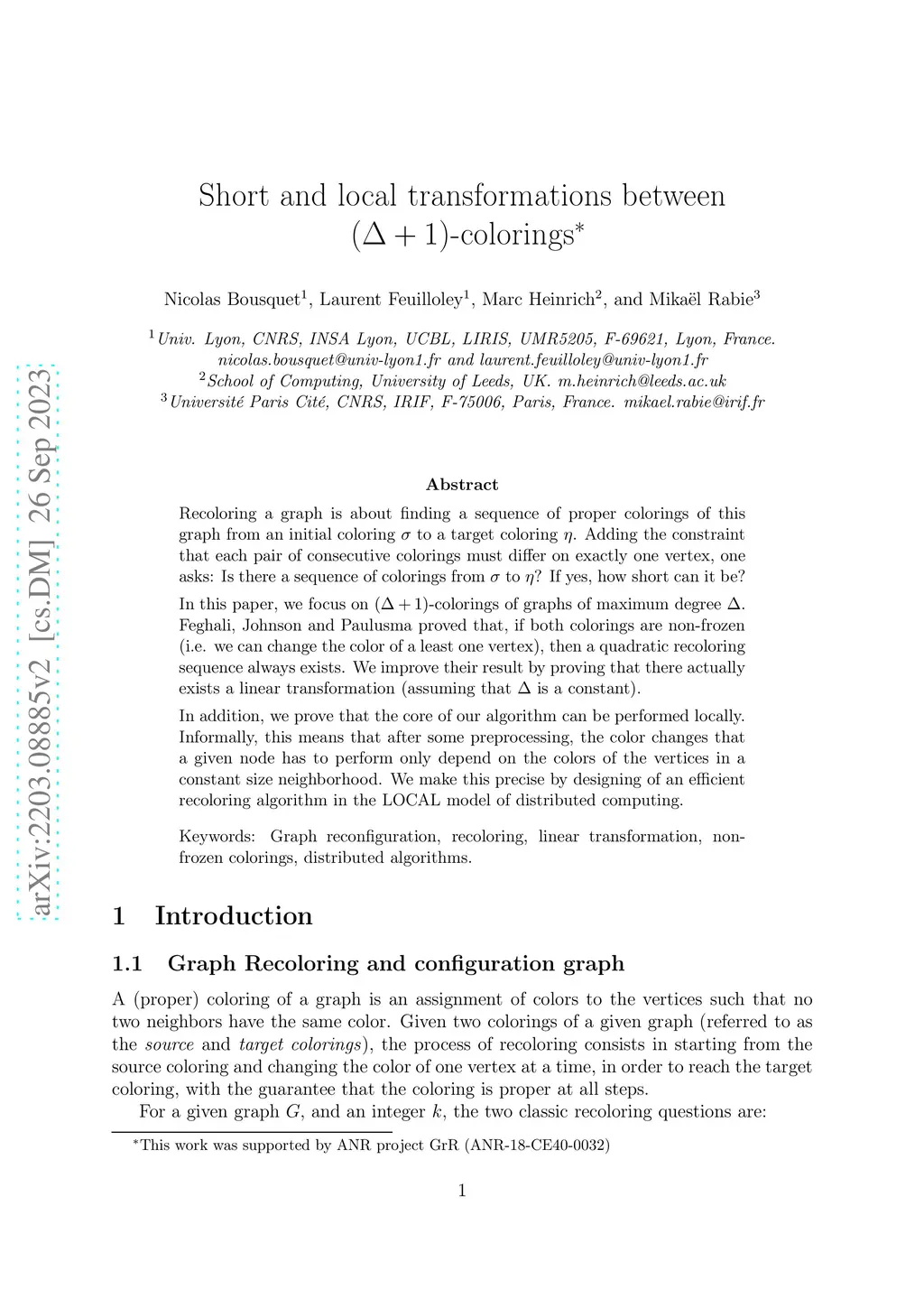 Recoloring a graph is about finding a sequence of proper colorings of this graph from an initial coloring to a target coloring . Adding the constraint that each pair of consecutive colorings must differ on exactly one vertex, one asks: Is there a sequence of colorings from to ? If yes, how short can it be? In this paper, we focus on -colorings of graphs of maximum degree . Feghali, Johnson and Paulusma proved that, if both colorings are non-frozen (i.e. we can change the color of a least one vertex), then a quadratic recoloring sequence always exists. We improve their result by proving that there actually exists a linear transformation (assuming that is a constant). In addition, we prove that the core of our algorithm can be performed locally. Informally, this means that after some preprocessing, the color changes that a given node has to perform only depend on the colors of the vertices in a constant size neighborhood. We make this precise by designing of an efficient recoloring algorithm in the LOCAL model of distributed computing.