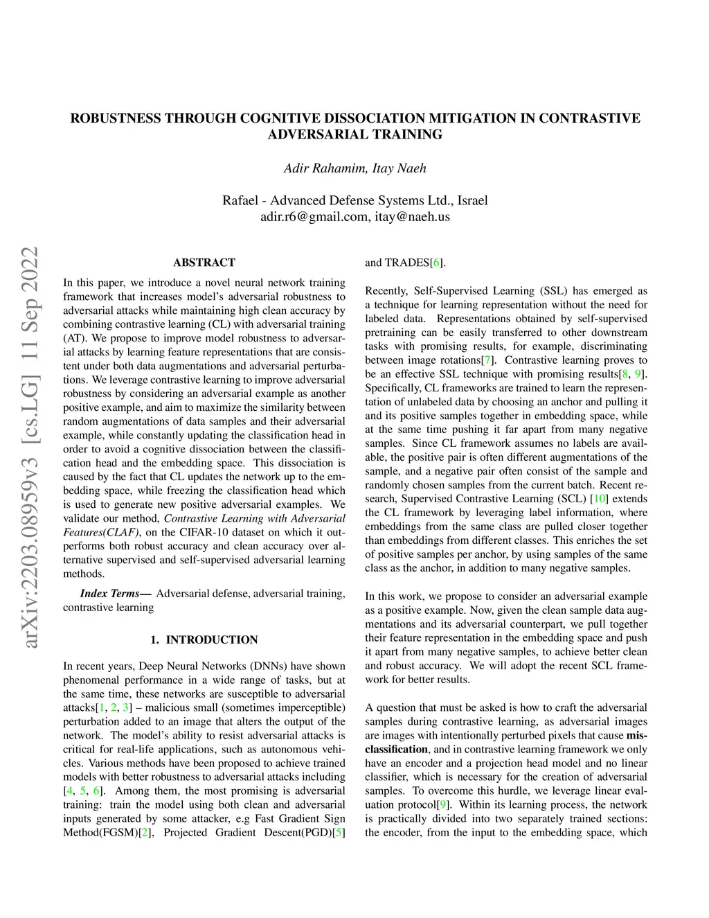 Robustness through Cognitive Dissociation Mitigation in Contrastive Adversarial Training
