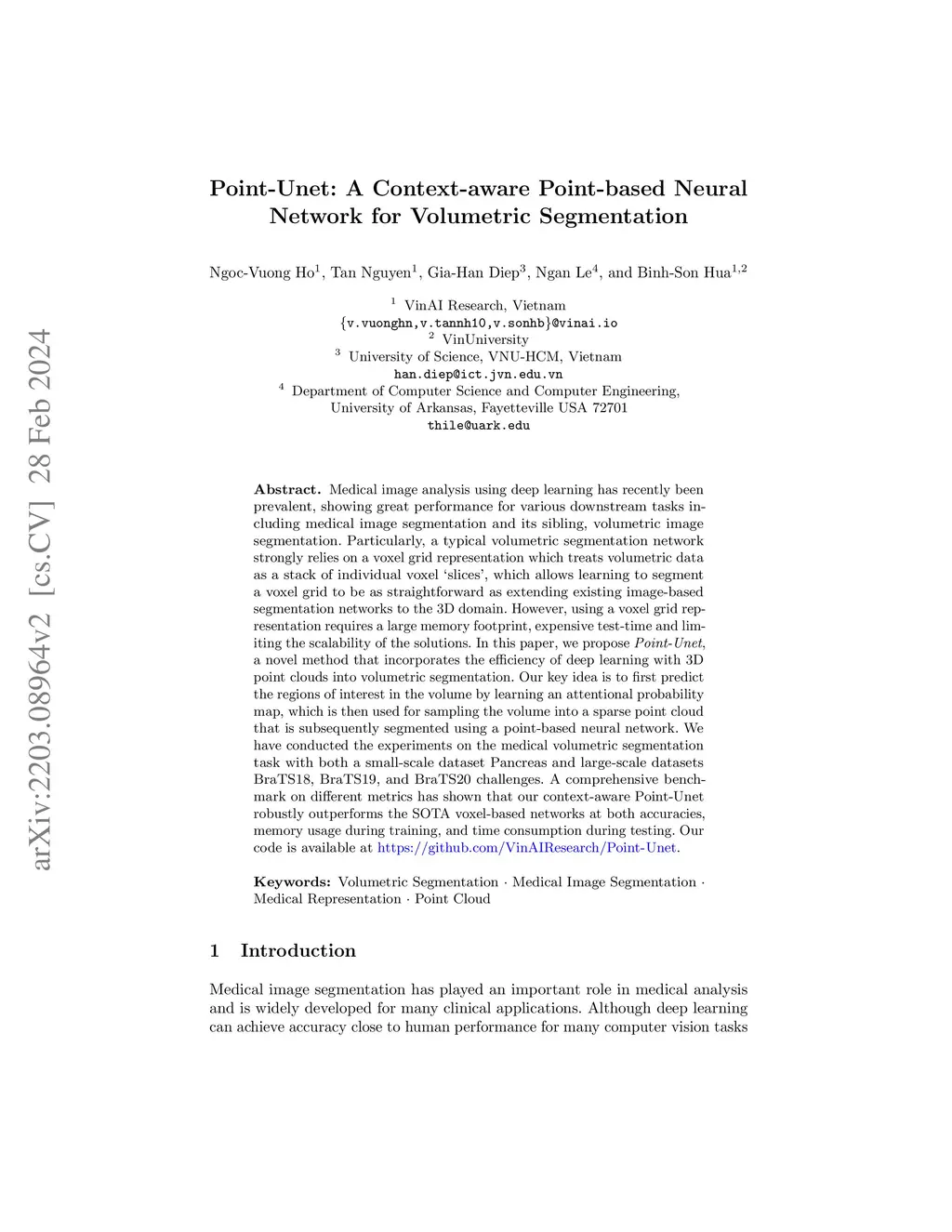 Point-Unet: A Context-aware Point-based Neural Network for Volumetric