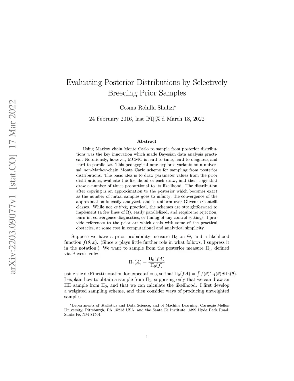 Using Markov chain Monte Carlo to sample from posterior distributions was the key innovation which made Bayesian data analysis practical. Notoriously, however, MCMC is hard to tune, hard to diagnose, and hard to parallelize. This pedagogical note explores variants on a universal {\em non}-Markov-chain Monte Carlo scheme for sampling from posterior distributions. The basic idea is to draw parameter values from the prior distributions, evaluate the likelihood of each draw, and then copy that draw a number of times proportional to its likelihood. The distribution after copying is an approximation to the posterior which becomes exact as the number of initial samples goes to infinity; the convergence of the approximation is easily analyzed, and is uniform over Glivenko-Cantelli classes. While not {\em entirely} practical, the schemes are straightforward to implement (a few lines of R), easily parallelized, and require no rejection, burn-in, convergence diagnostics, or tuning of any control settings. I provide references to the prior art which deals with some of the practical obstacles, at some cost in computational and analytical simplicity.