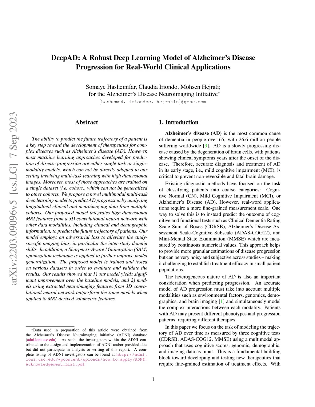 DeepAD: A Robust Deep Learning Model of Alzheimer's Disease Progression