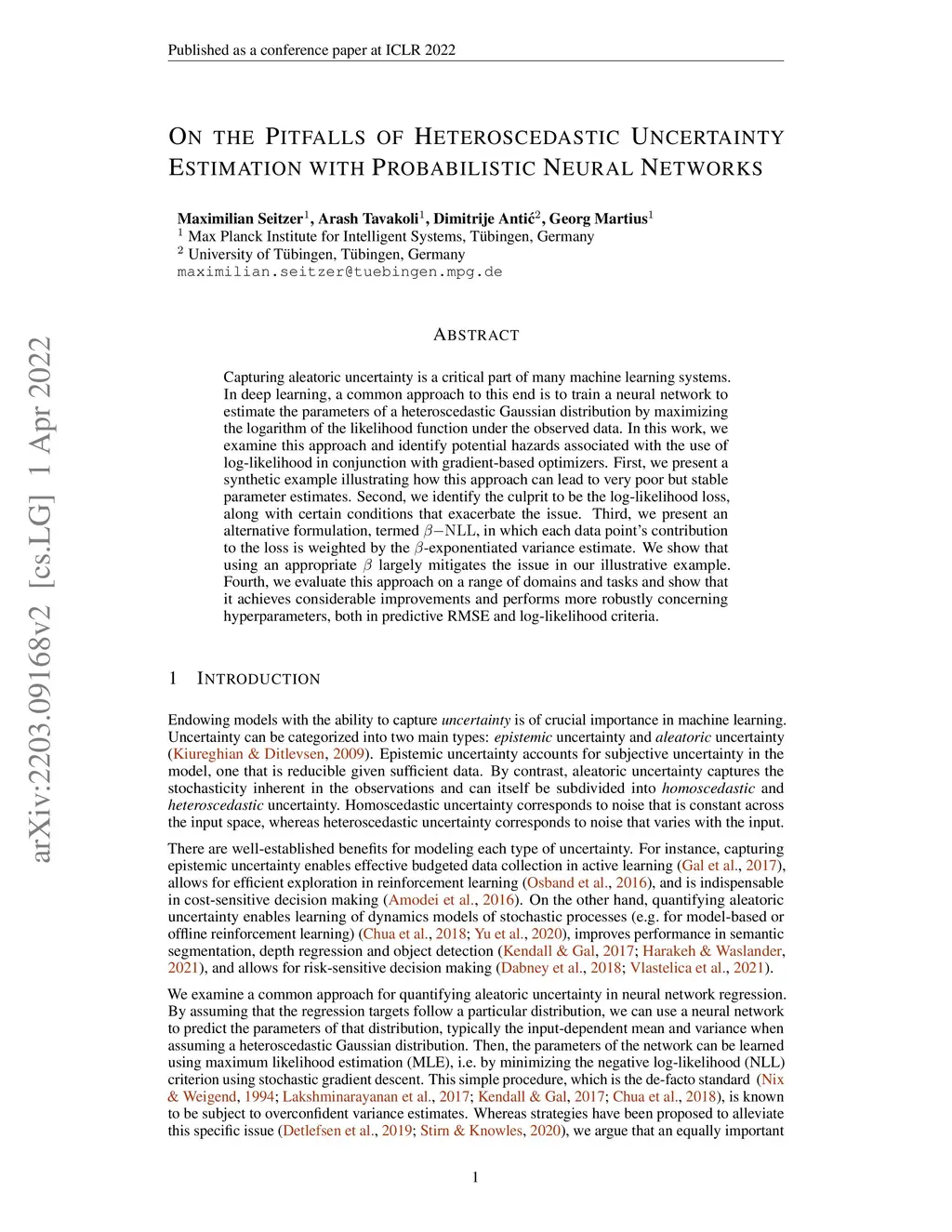 Capturing aleatoric uncertainty is a critical part of many machine learning systems. In deep learning, a common approach to this end is to train a neural network to estimate the parameters of a heteroscedastic Gaussian distribution by maximizing the logarithm of the likelihood function under the observed data. In this work, we examine this approach and identify potential hazards associated with the use of log-likelihood in conjunction with gradient-based optimizers. First, we present a synthetic example illustrating how this approach can lead to very poor but stable parameter estimates. Second, we identify the culprit to be the log-likelihood loss, along with certain conditions that exacerbate the issue. Third, we present an alternative formulation, termed -NLL, in which each data point's contribution to the loss is weighted by the -exponentiated variance estimate. We show that using an appropriate largely mitigates the issue in our illustrative example. Fourth, we evaluate this approach on a range of domains and tasks and show that it achieves considerable improvements and performs more robustly concerning hyperparameters, both in predictive RMSE and log-likelihood criteria.