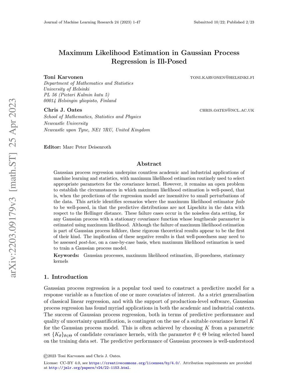 Maximum Likelihood Estimation in Gaussian Process Regression is