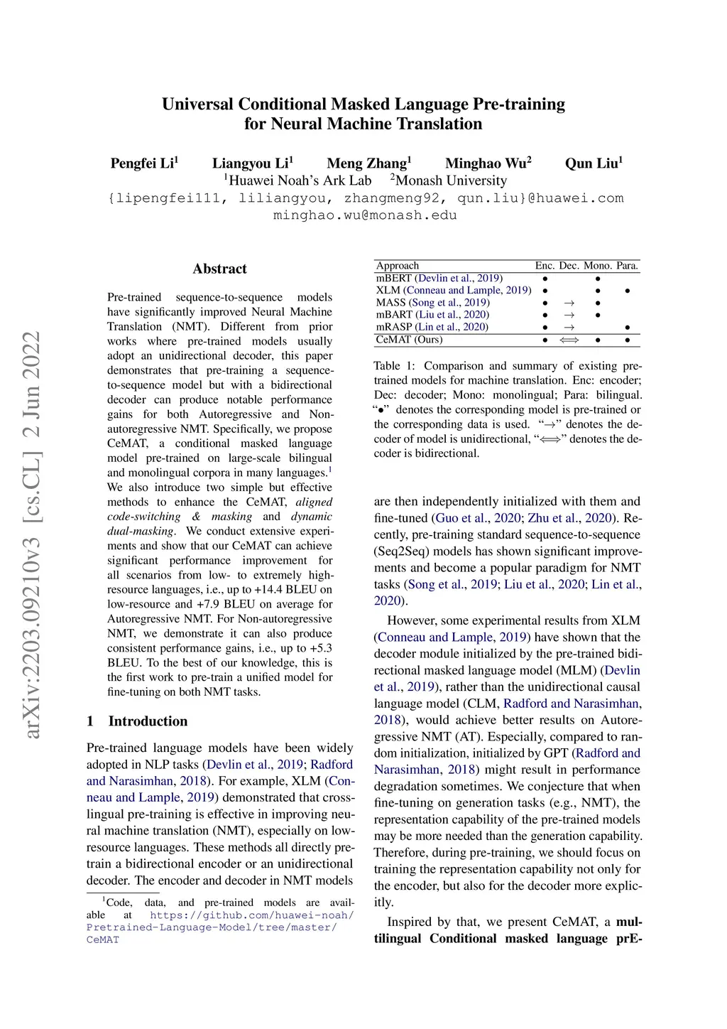 Universal Conditional Masked Language Pre-training for Neural Machine