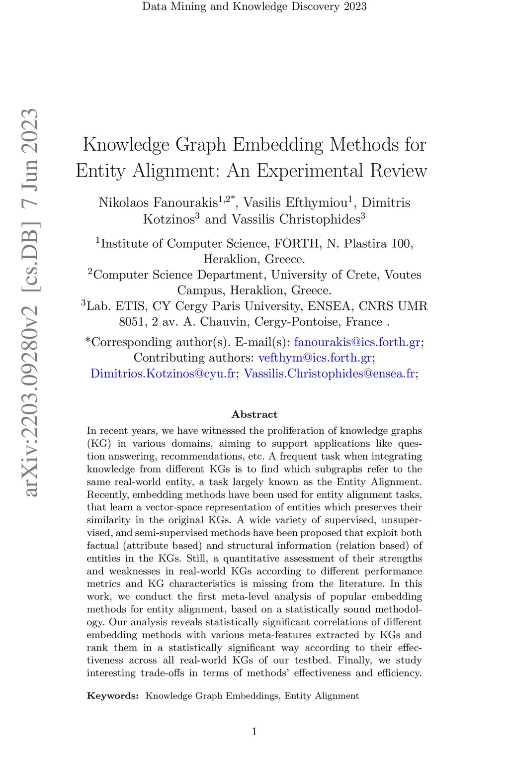 Knowledge Graph Embedding Methods for Entity Alignment: An Experimental