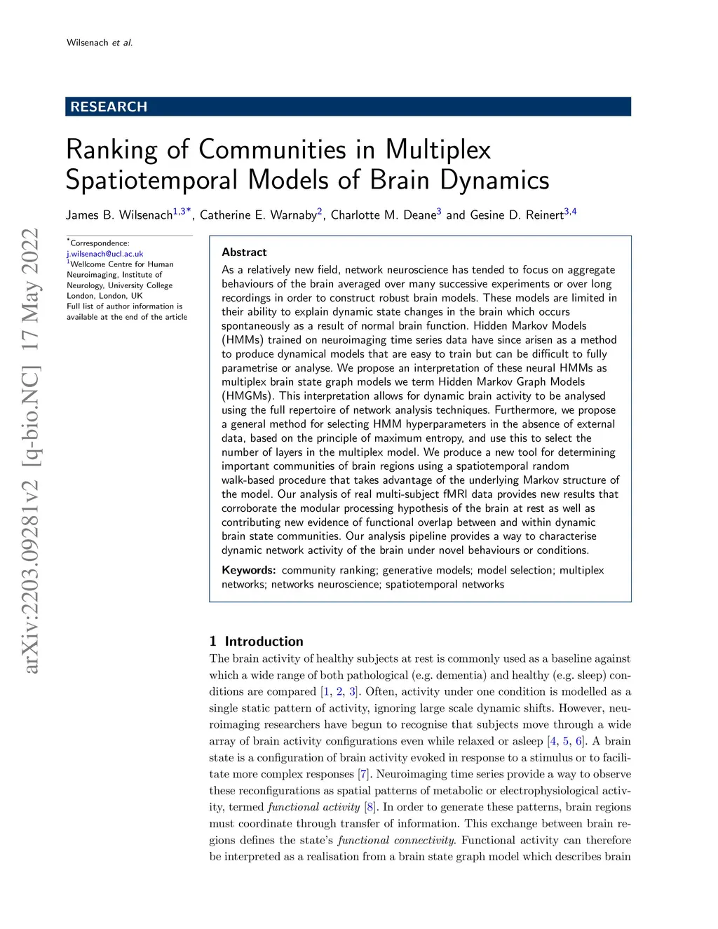 As a relatively new field, network neuroscience has tended to focus on aggregate behaviours of the brain averaged over many successive experiments or over long recordings in order to construct robust brain models. These models are limited in their ability to explain dynamic state changes in the brain which occurs spontaneously as a result of normal brain function. Hidden Markov Models (HMMs) trained on neuroimaging time series data have since arisen as a method to produce dynamical models that are easy to train but can be difficult to fully parametrise or analyse. We propose an interpretation of these neural HMMs as multiplex brain state graph models we term Hidden Markov Graph Models (HMGMs). This interpretation allows for dynamic brain activity to be analysed using the full repertoire of network analysis techniques. Furthermore, we propose a general method for selecting HMM hyperparameters in the absence of external data, based on the principle of maximum entropy, and use this to select the number of layers in the multiplex model. We produce a new tool for determining important communities of brain regions using a spatiotemporal random walk-based procedure that takes advantage of the underlying Markov structure of the model. Our analysis of real multi-subject fMRI data provides new results that corroborate the modular processing hypothesis of the brain at rest as well as contributing new evidence of functional overlap between and within dynamic brain state communities. Our analysis pipeline provides a way to characterise dynamic network activity of the brain under novel behaviours or conditions.