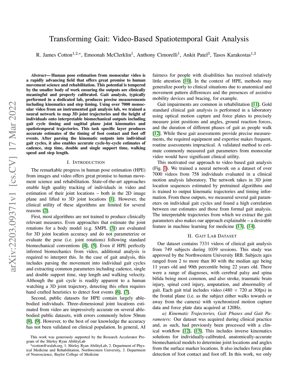 Transforming Gait: Video-Based Spatiotemporal Gait Analysis