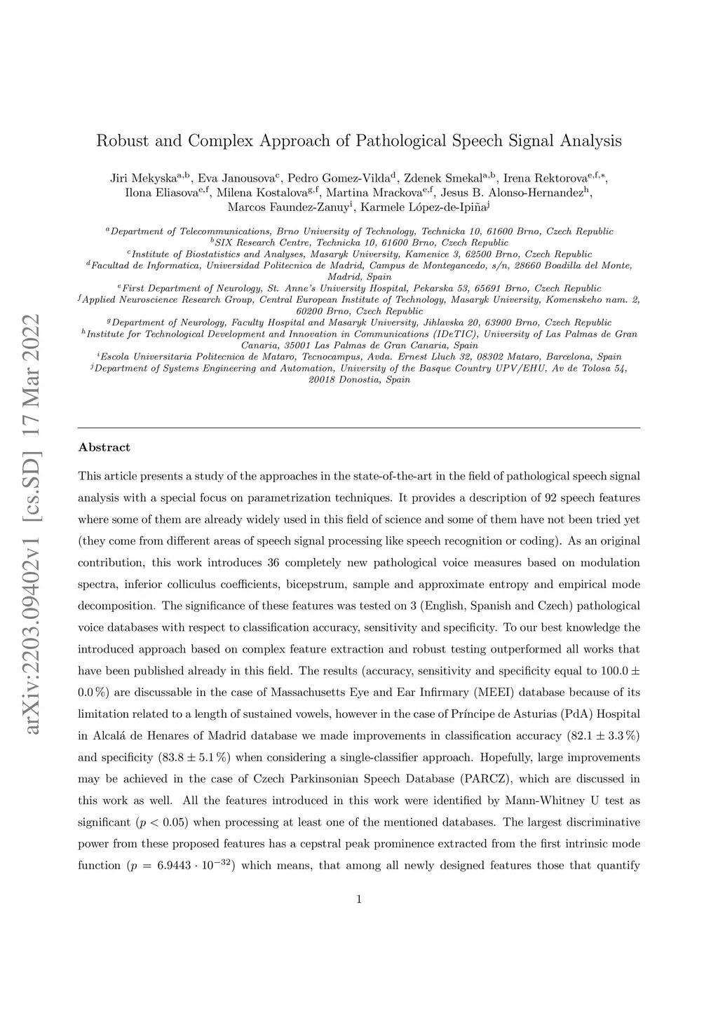Robust and Complex Approach of Pathological Speech Signal Analysis