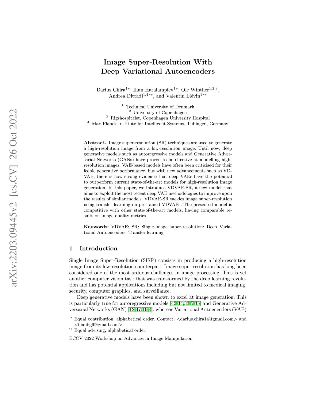 Image super-resolution (SR) techniques are used to generate a high-resolution image from a low-resolution image. Until now, deep generative models such as autoregressive models and Generative Adversarial Networks (GANs) have proven to be effective at modelling high-resolution images. VAE-based models have often been criticised for their feeble generative performance, but with new advancements such as VDVAE, there is now strong evidence that deep VAEs have the potential to outperform current state-of-the-art models for high-resolution image generation. In this paper, we introduce VDVAE-SR, a new model that aims to exploit the most recent deep VAE methodologies to improve upon the results of similar models. VDVAE-SR tackles image super-resolution using transfer learning on pretrained VDVAEs. The presented model is competitive with other state-of-the-art models, having comparable results on image quality metrics.