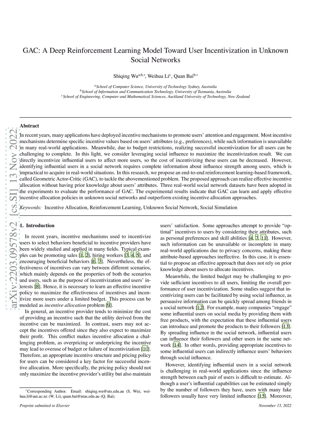 GAC: A Deep Reinforcement Learning Model Toward User Incentivization in