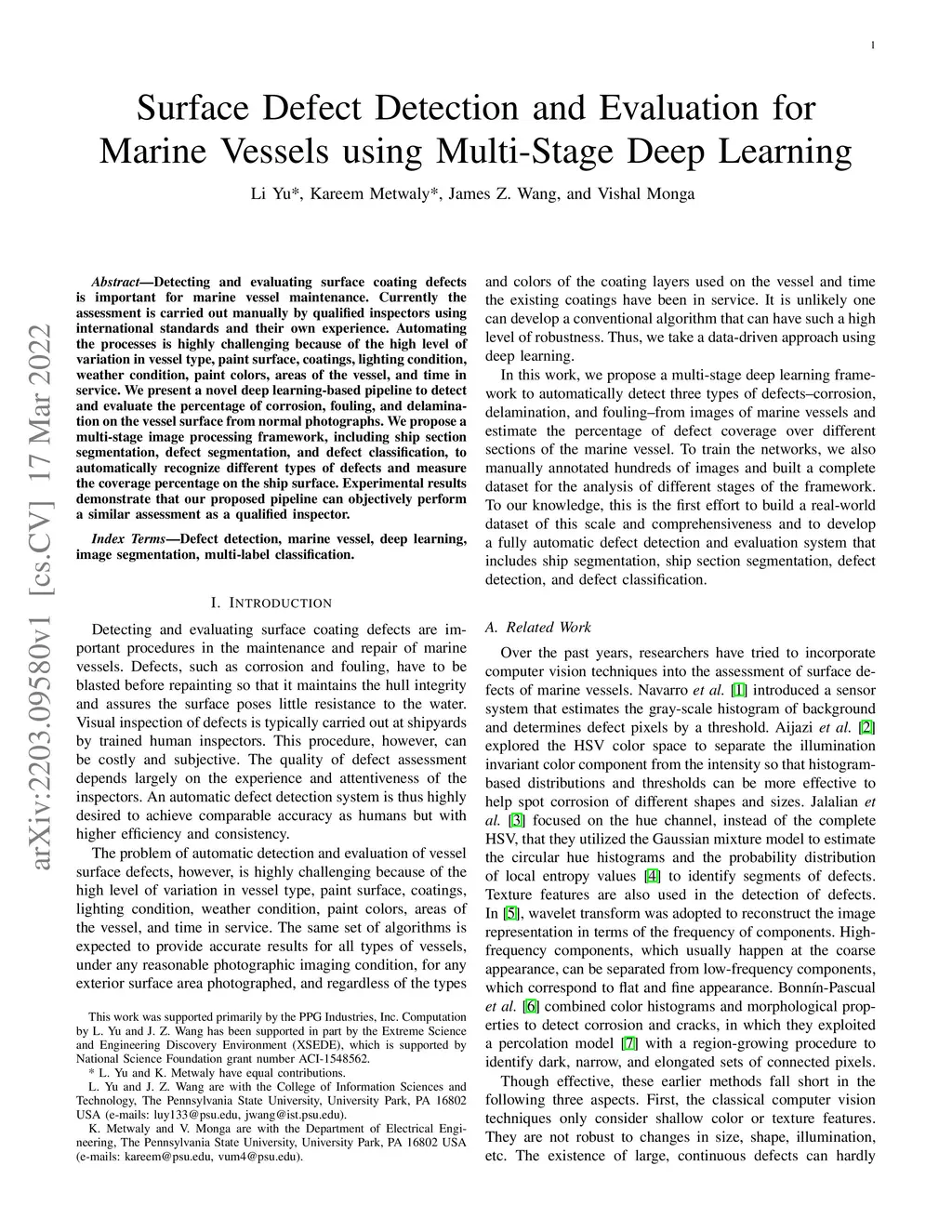 Surface Defect Detection and Evaluation for Marine Vessels using