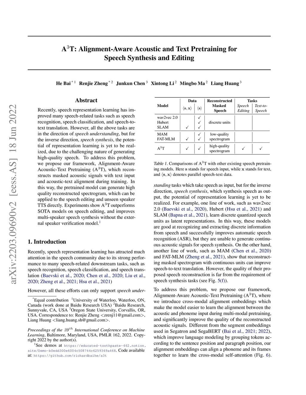 AT: Alignment-Aware Acoustic and Text Pretraining for Speech