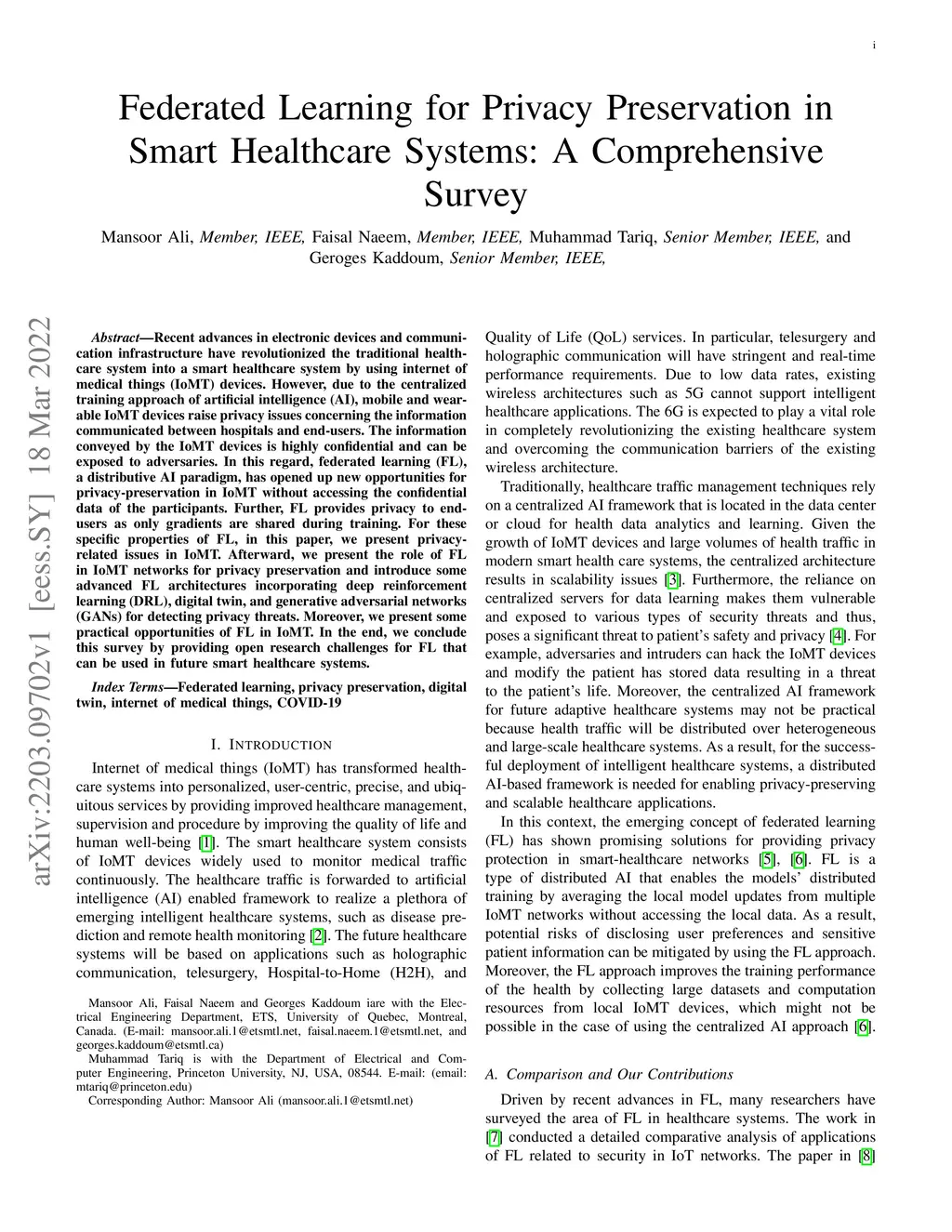 Recent advances in electronic devices and communication infrastructure have revolutionized the traditional healthcare system into a smart healthcare system by using IoMT devices. However, due to the centralized training approach of artificial intelligence (AI), the use of mobile and wearable IoMT devices raises privacy concerns with respect to the information that has been communicated between hospitals and end users. The information conveyed by the IoMT devices is highly confidential and can be exposed to adversaries. In this regard, federated learning (FL), a distributive AI paradigm has opened up new opportunities for privacy-preservation in IoMT without accessing the confidential data of the participants. Further, FL provides privacy to end users as only gradients are shared during training. For these specific properties of FL, in this paper we present privacy related issues in IoMT. Afterwards, we present the role of FL in IoMT networks for privacy preservation and introduce some advanced FL architectures incorporating deep reinforcement learning (DRL), digital twin, and generative adversarial networks (GANs) for detecting privacy threats. Subsequently, we present some practical opportunities of FL in smart healthcare systems. At the end, we conclude this survey by providing open research challenges for FL that can be used in future smart healthcare systems