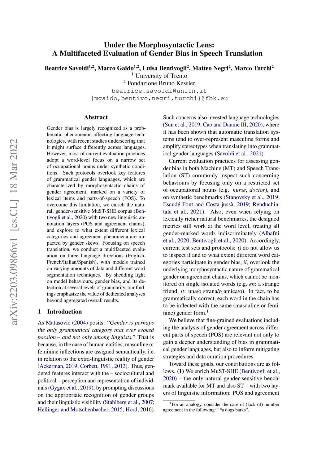 Gender bias is largely recognized as a problematic phenomenon affecting language technologies, with recent studies underscoring that it might surface differently across languages. However, most of current evaluation practices adopt a word-level focus on a narrow set of occupational nouns under synthetic conditions. Such protocols overlook key features of grammatical gender languages, which are characterized by morphosyntactic chains of gender agreement, marked on a variety of lexical items and parts-of-speech (POS). To overcome this limitation, we enrich the natural, gender-sensitive MuST-SHE corpus (Bentivogli et al., 2020) with two new linguistic annotation layers (POS and agreement chains), and explore to what extent different lexical categories and agreement phenomena are impacted by gender skews. Focusing on speech translation, we conduct a multifaceted evaluation on three language directions (English-French/Italian/Spanish), with models trained on varying amounts of data and different word segmentation techniques. By shedding light on model behaviours, gender bias, and its detection at several levels of granularity, our findings emphasize the value of dedicated analyses beyond aggregated overall results.