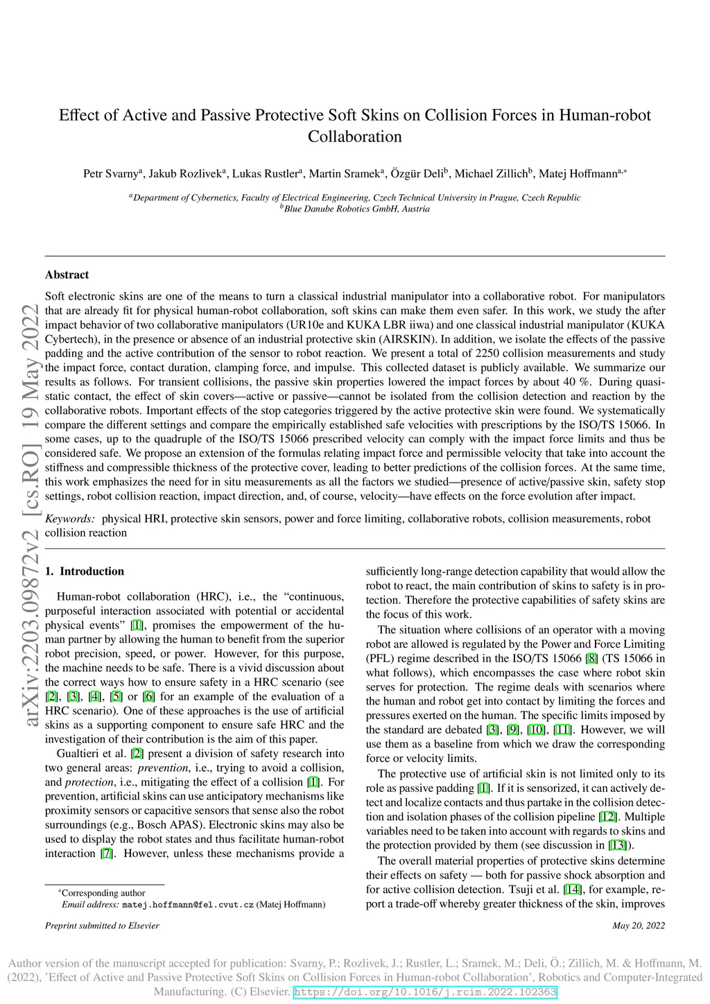 Effect of Active and Passive Protective Soft Skins on Collision Forces