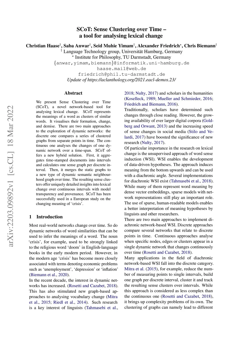 SCoT: Sense Clustering over Time: a tool for the analysis of lexical