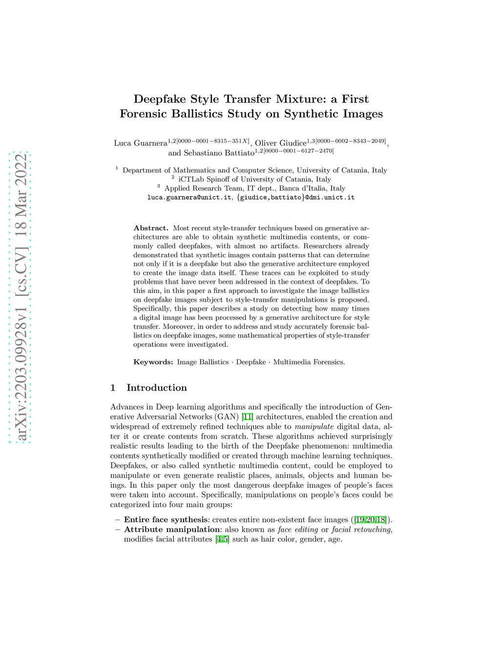 Deepfake Style Transfer Mixture: a First Forensic Ballistics Study on