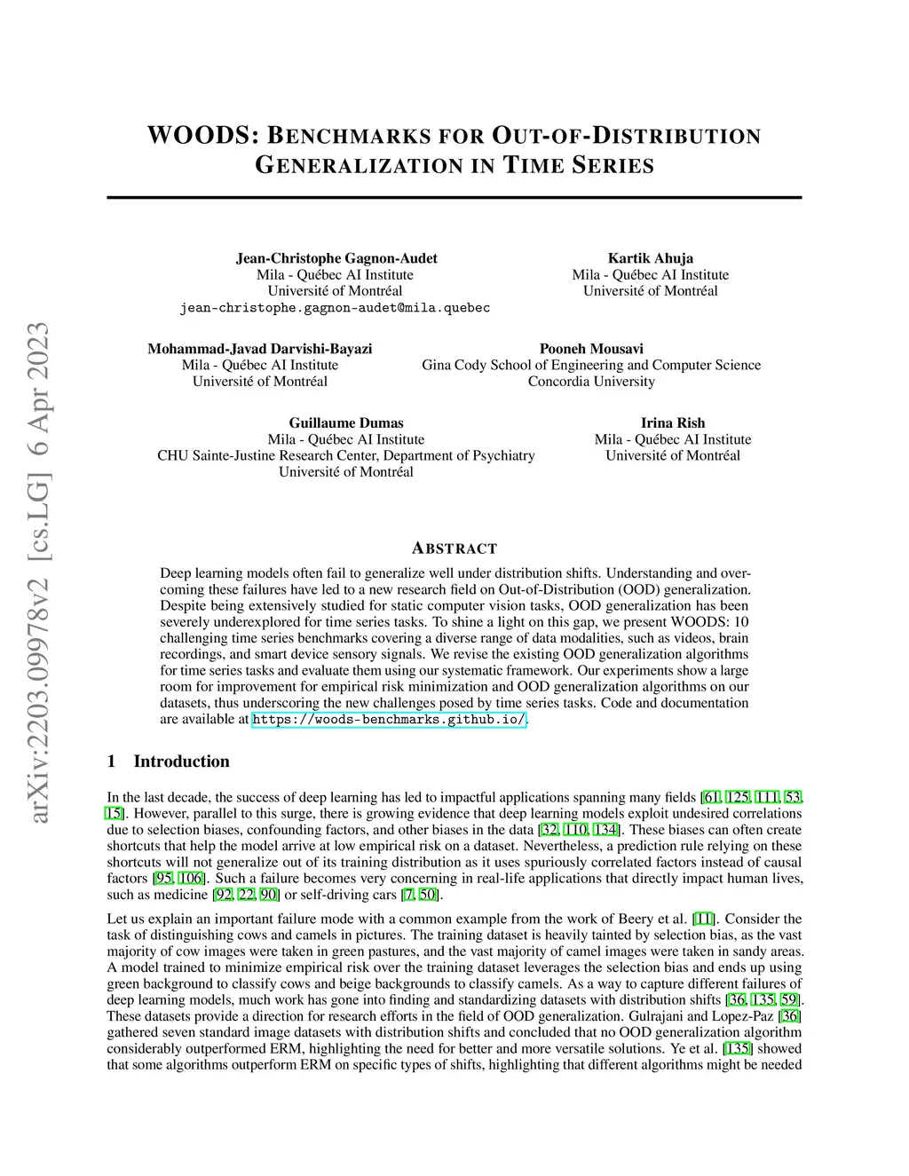 WOODS: Benchmarks for Out-of-Distribution Generalization in Time Series
