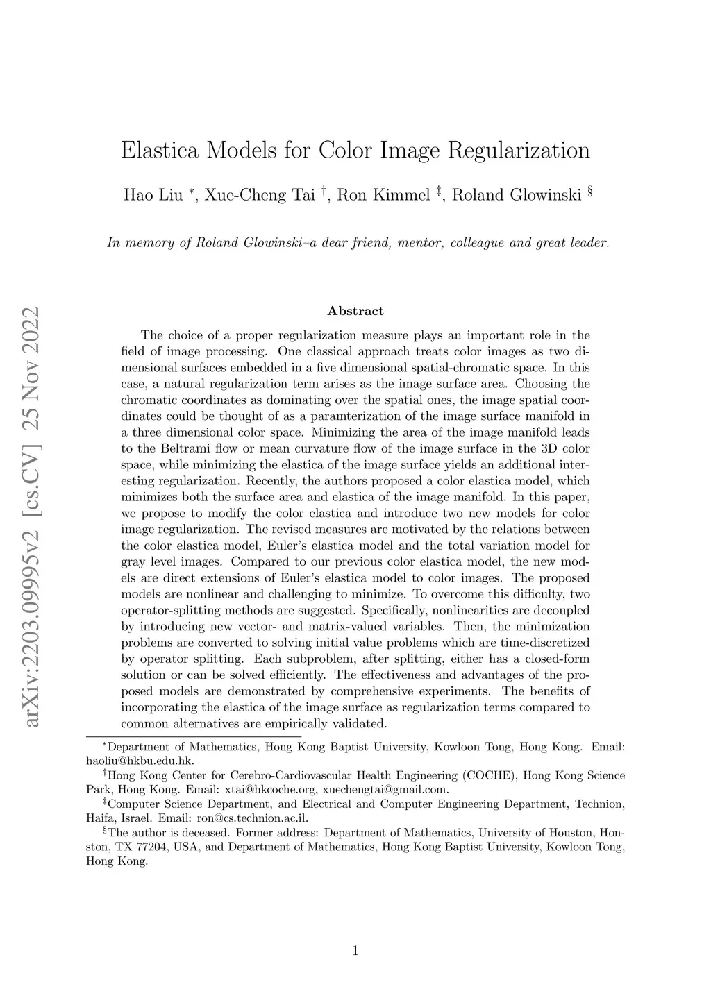 Elastica Models for Color Image Regularization