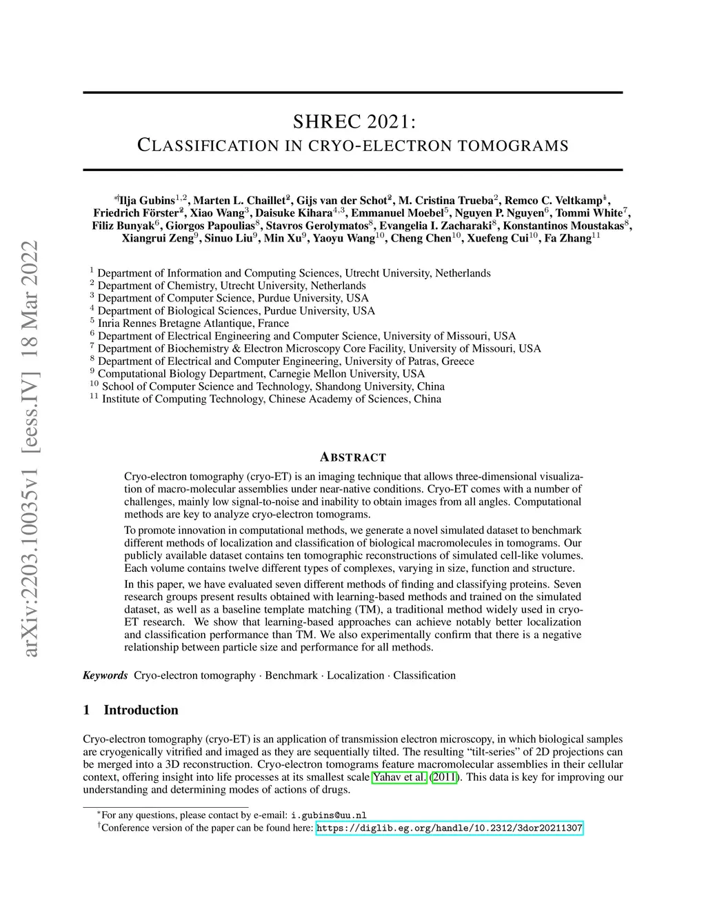 SHREC 2021: Classification in cryo-electron tomograms