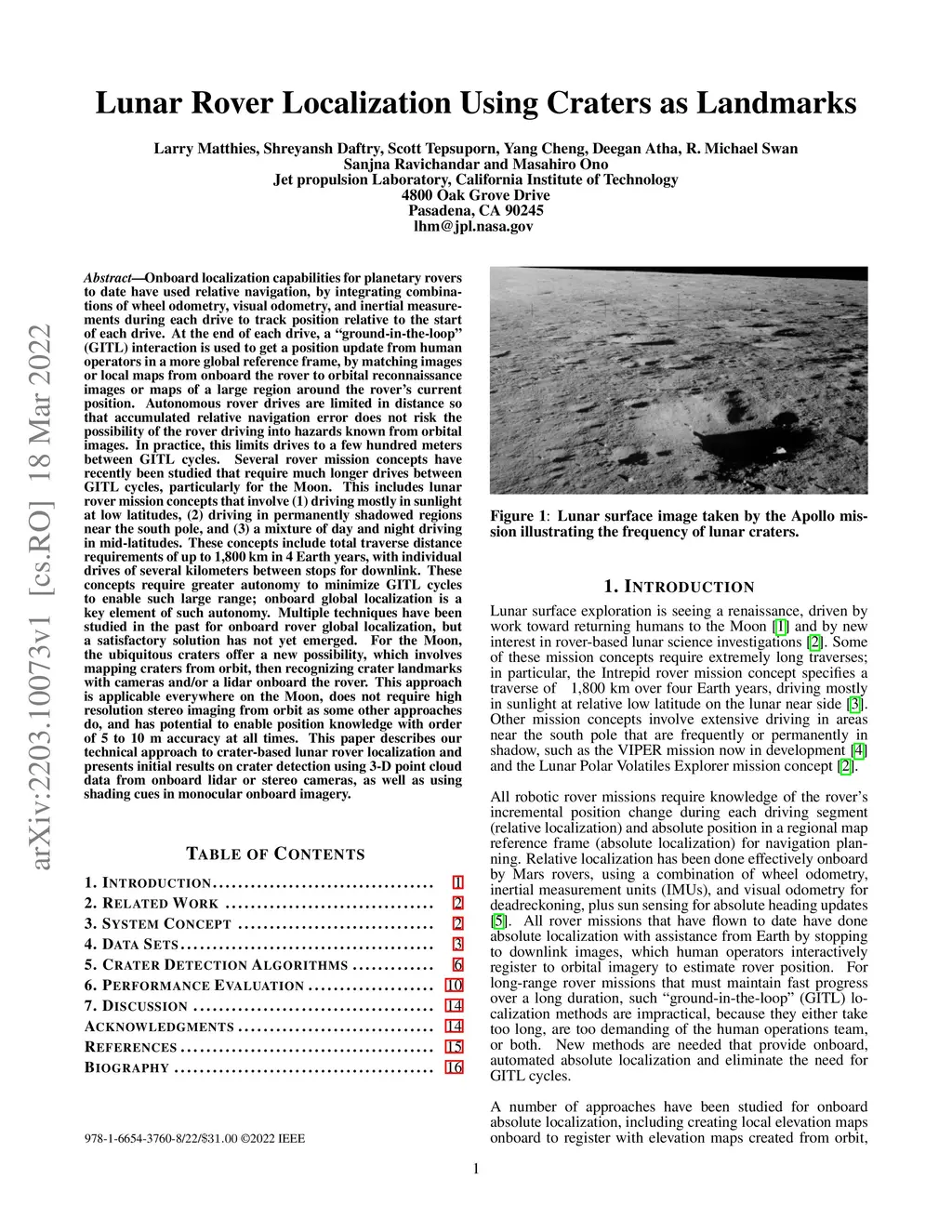 Lunar Rover Localization Using Craters as Landmarks