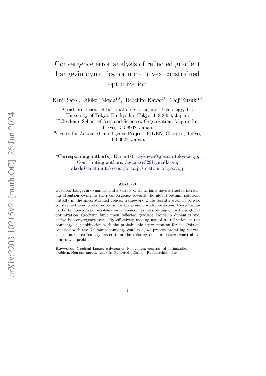 Gradient Langevin dynamics and a variety of its variants have attracted increasing attention owing to their convergence towards the global optimal solution, initially in the unconstrained convex framework while recently even in convex constrained non-convex problems. In the present work, we extend those frameworks to non-convex problems on a non-convex feasible region with a global optimization algorithm built upon reflected gradient Langevin dynamics and derive its convergence rates. By effectively making use of its reflection at the boundary in combination with the probabilistic representation for the Poisson equation with the Neumann boundary condition, we present promising convergence rates, particularly faster than the existing one for convex constrained non-convex problems.