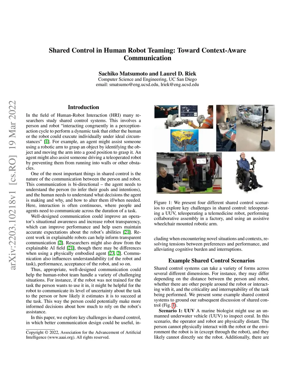 Shared Control in Human Robot Teaming: Toward Context-Aware