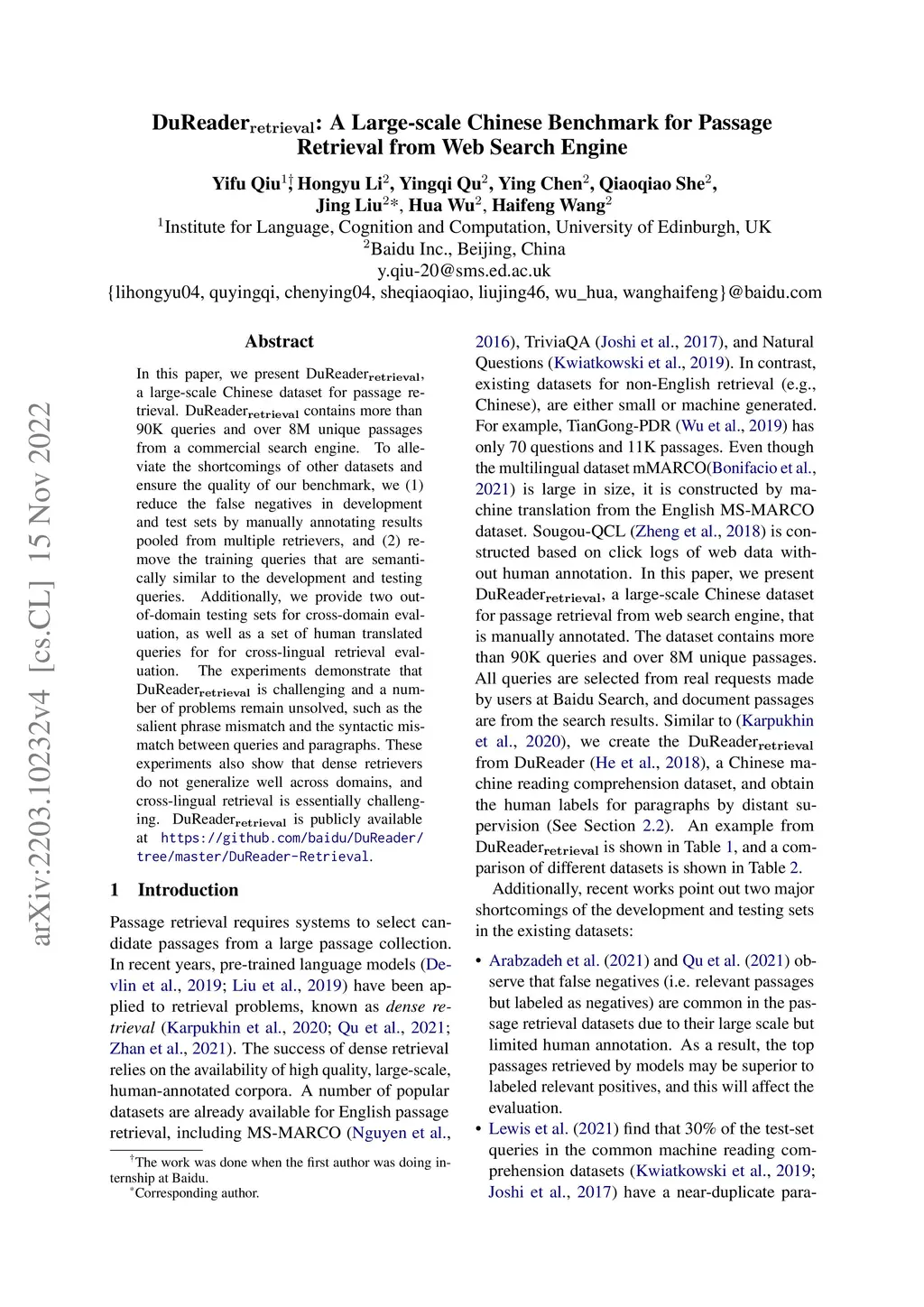 DuReader_retrieval: A Large-scale Chinese Benchmark for Passage