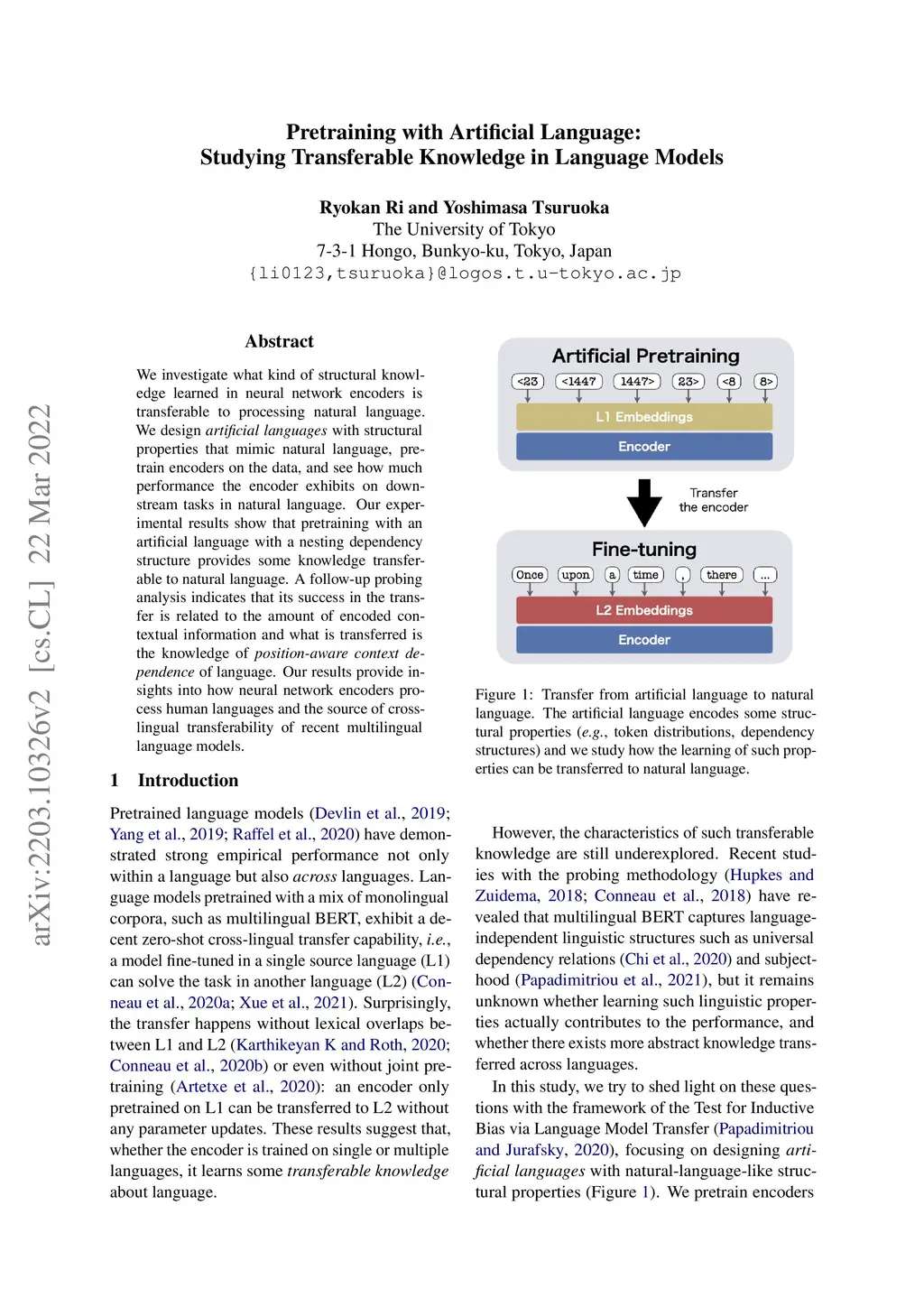 Pretraining with Artificial Language: Studying Transferable Knowledge in