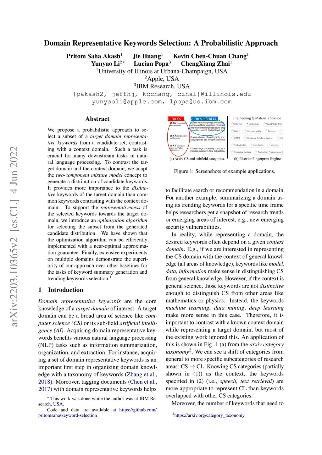 Domain Representative Keywords Selection: A Probabilistic Approach