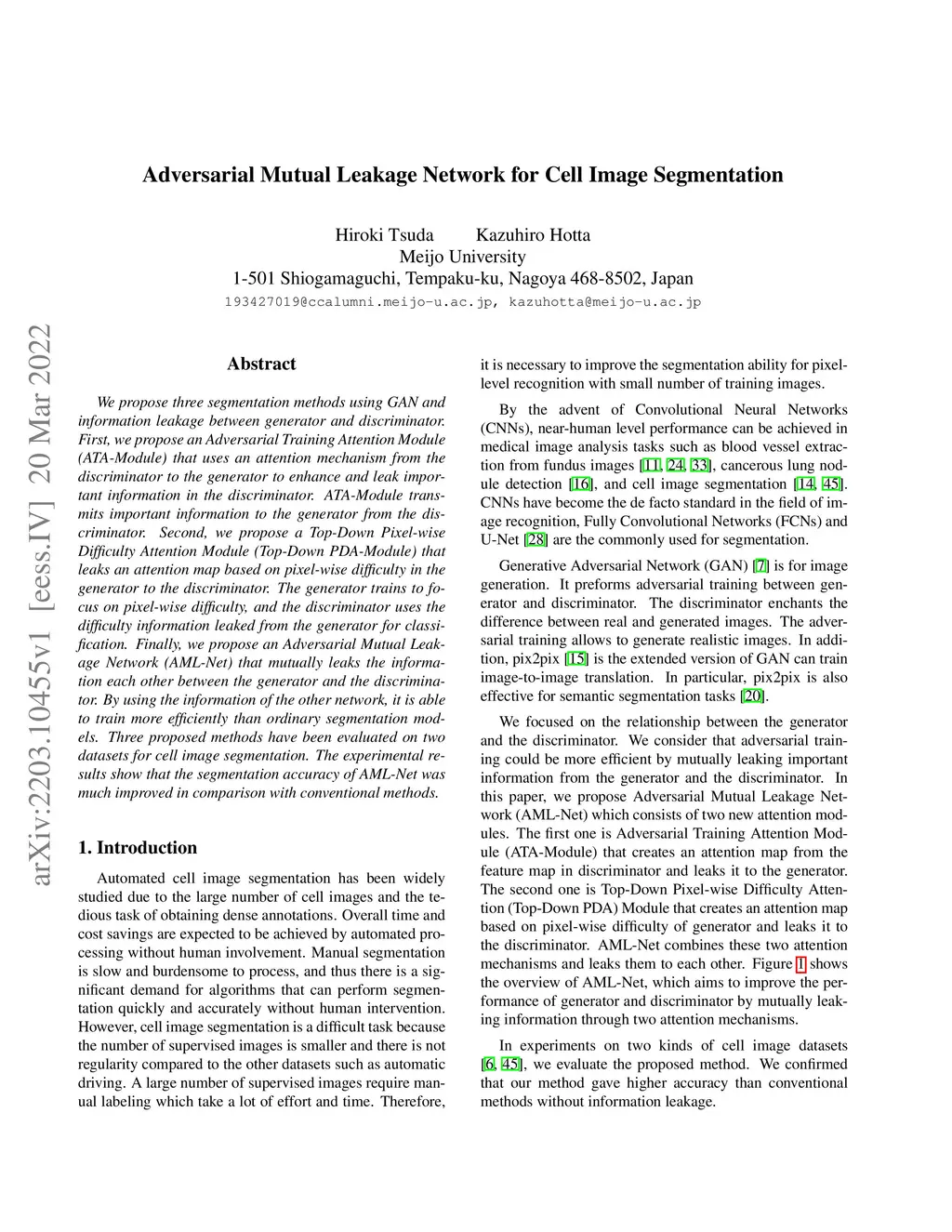 Adversarial Mutual Leakage Network for Cell Image Segmentation