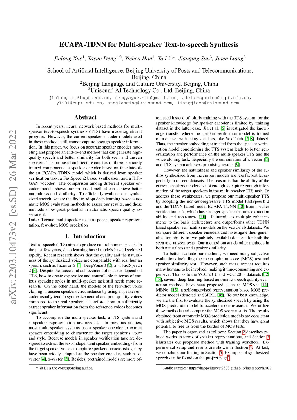 ECAPA-TDNN for Multi-speaker Text-to-speech Synthesis