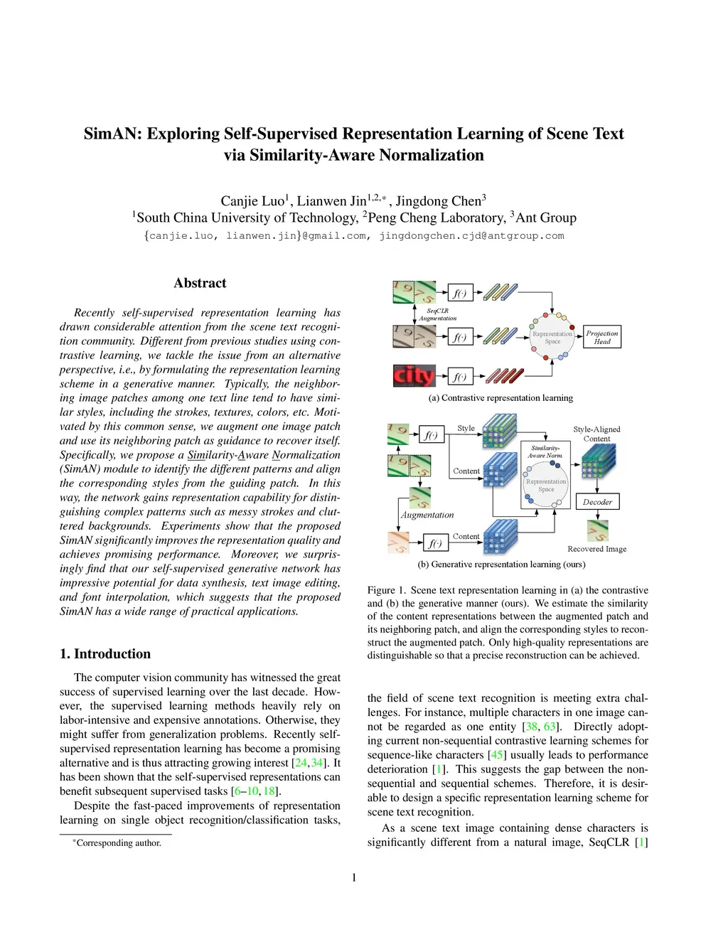 SimAN: Exploring Self-Supervised Representation Learning of Scene Text via Similarity-Aware Normalization