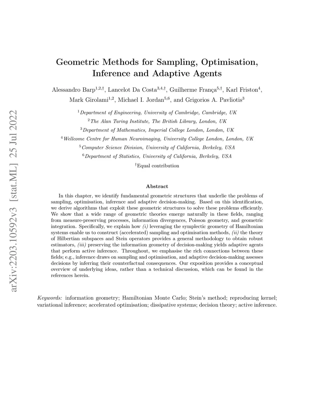 Geometric Methods for Sampling, Optimisation, Inference and Adaptive