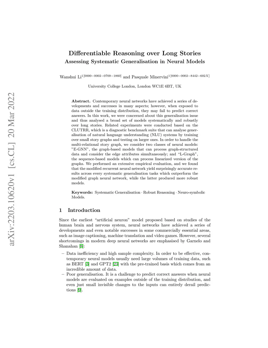 Contemporary neural networks have achieved a series of developments and successes in many aspects; however, when exposed to data outside the training distribution, they may fail to predict correct answers. In this work, we were concerned about this generalisation issue and thus analysed a broad set of models systematically and robustly over long stories. Related experiments were conducted based on the CLUTRR, which is a diagnostic benchmark suite that can analyse generalisation of natural language understanding (NLU) systems by training over small story graphs and testing on larger ones. In order to handle the multi-relational story graph, we consider two classes of neural models: "E-GNN", the graph-based models that can process graph-structured data and consider the edge attributes simultaneously; and "L-Graph", the sequence-based models which can process linearized version of the graphs. We performed an extensive empirical evaluation, and we found that the modified recurrent neural network yield surprisingly accurate results across every systematic generalisation tasks which outperform the modified graph neural network, while the latter produced more robust models.