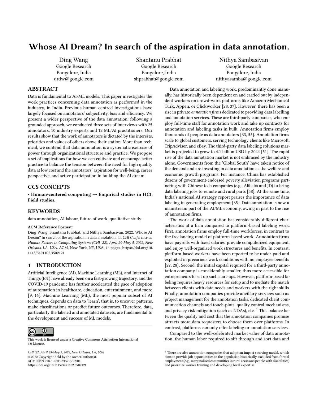 Whose AI Dream? In search of the aspiration in data annotation
