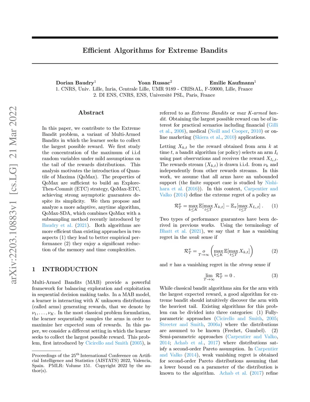 Efficient Algorithms for Extreme Bandits