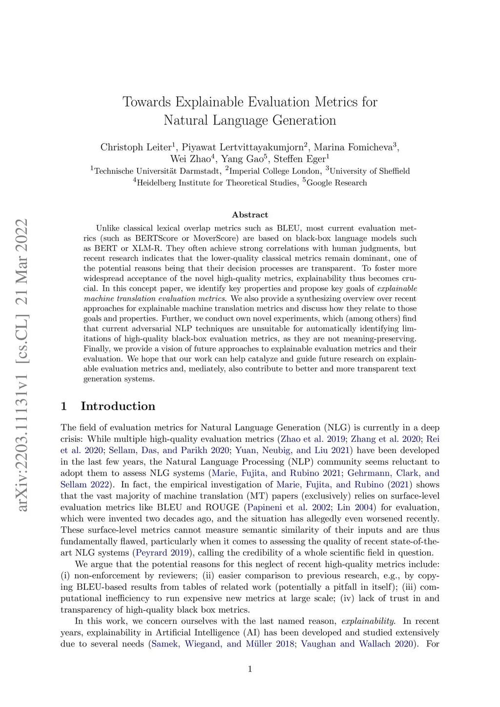 Towards Explainable Evaluation Metrics for Natural Language Generation