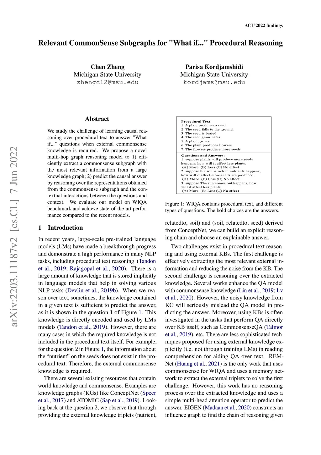 Relevant CommonSense Subgraphs for "What if..." Procedural Reasoning