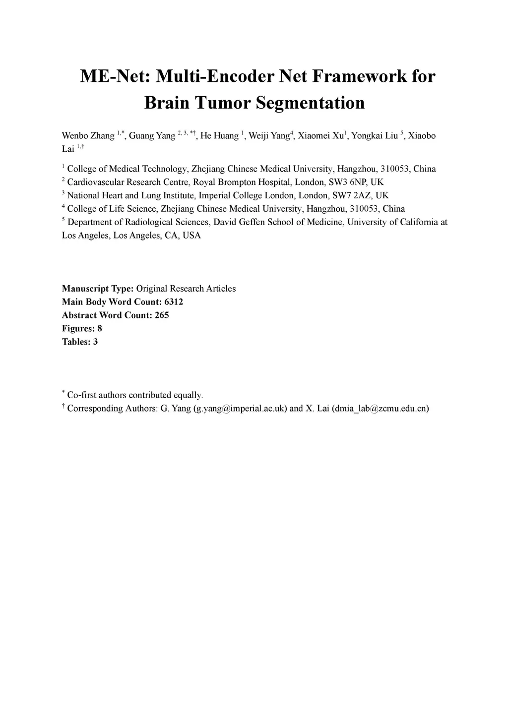 ME-Net: Multi-Encoder Net Framework for Brain Tumor Segmentation