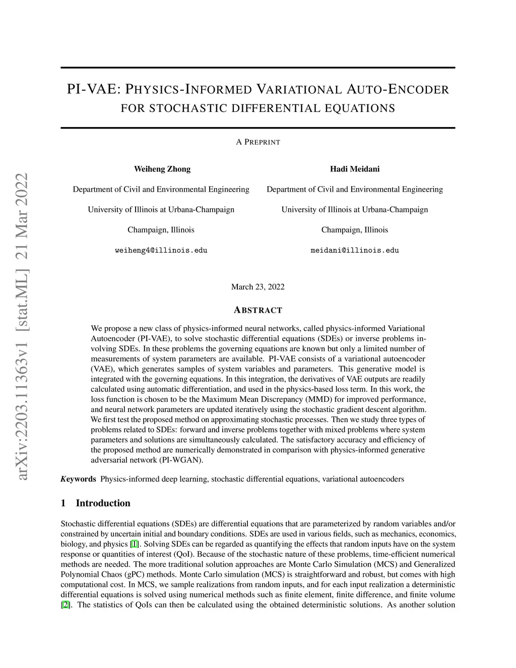PI-VAE: Physics-Informed Variational Auto-Encoder for stochastic
