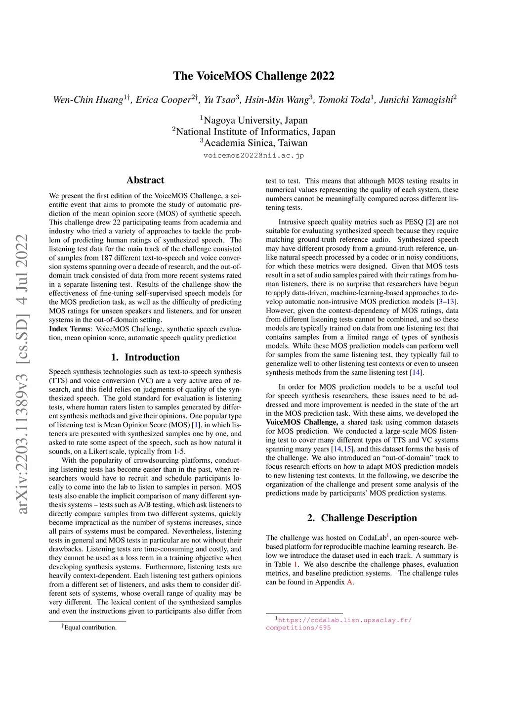 The VoiceMOS Challenge 2022