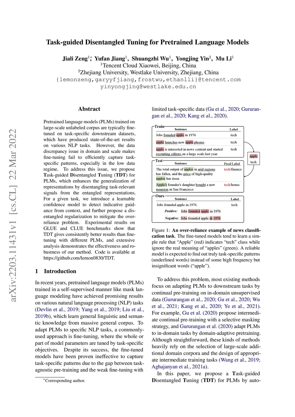 Task-guided Disentangled Tuning for Pretrained Language Models
